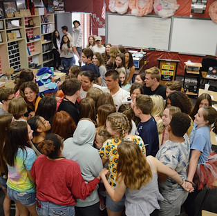 After dinner we got into our hall groups to finish hoco hall prep. While we were in these groups we started a new activity. One person from each group volunteered to have a disability for the rest of the night to experience how it may feel. This taught us the importance of working together and also not taking things for granted.